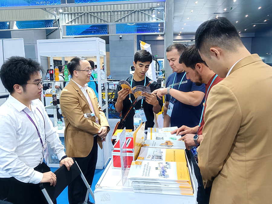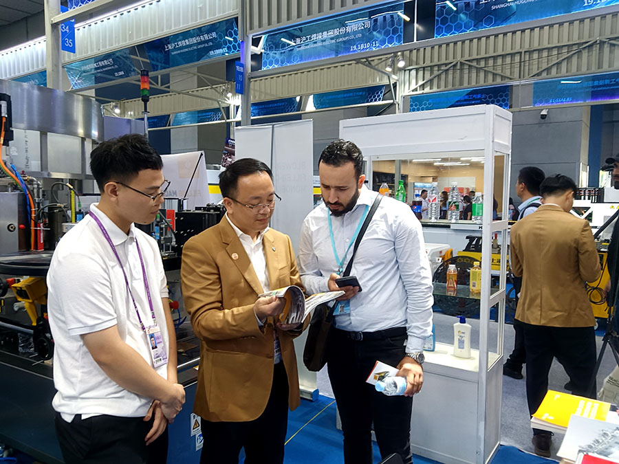 在對貼標機進行了近距離的觀摩與達意隆團隊的專業解說下,客戶對我們的技術創新有了更為全面深刻的了解并紛紛給予高度評價。現場外國客戶來訪不斷,洽談其歡,相繼約定工廠的實地考察與合作意向。