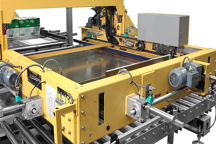 新式的編組站推箱傳動采用直線導軌配滑塊,運行平穩,結構簡潔。進箱采用通過伺服電機精準定位,不需要再加截箱裝置,對于不同的碼垛的排列方式,可以進行任意的排列。在啤酒產品的碼垛中,輸送帶運行平穩,控制精確度高,不會產生爆瓶的問題。